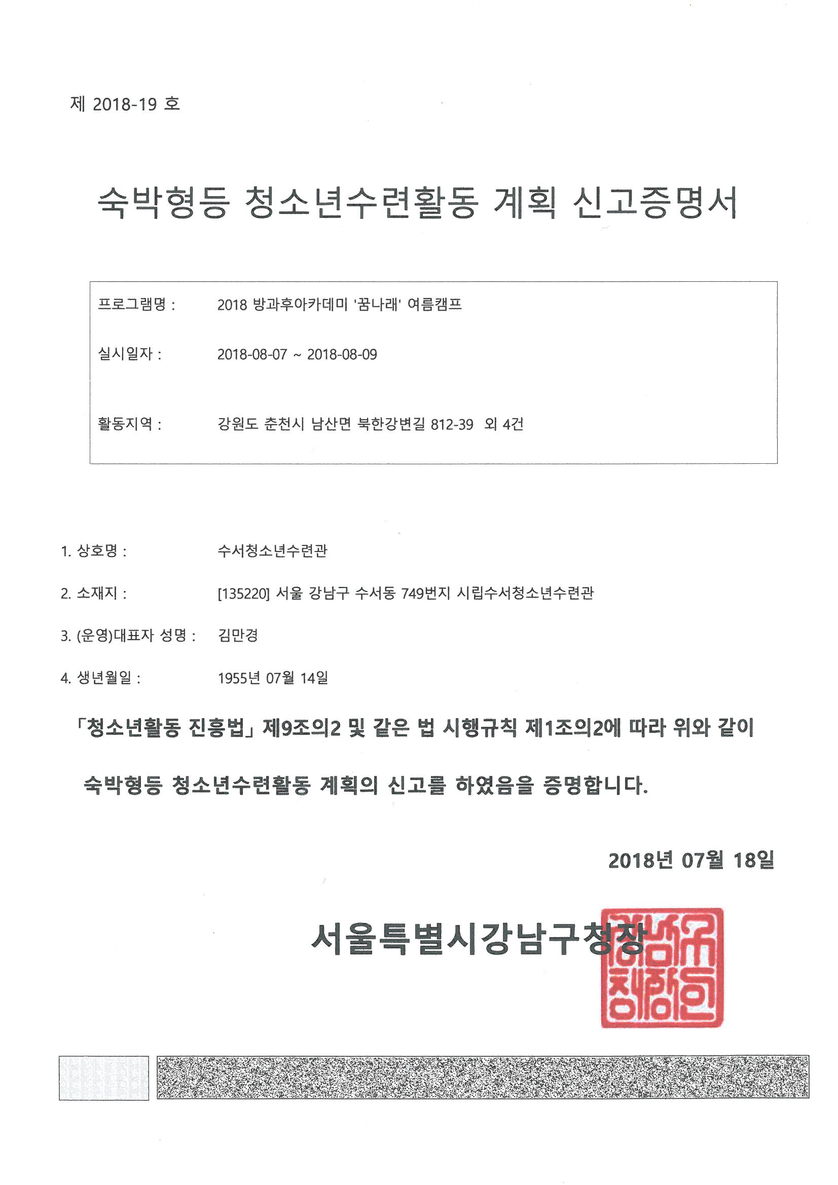· 청소년수련활동인증여부 - 미인증